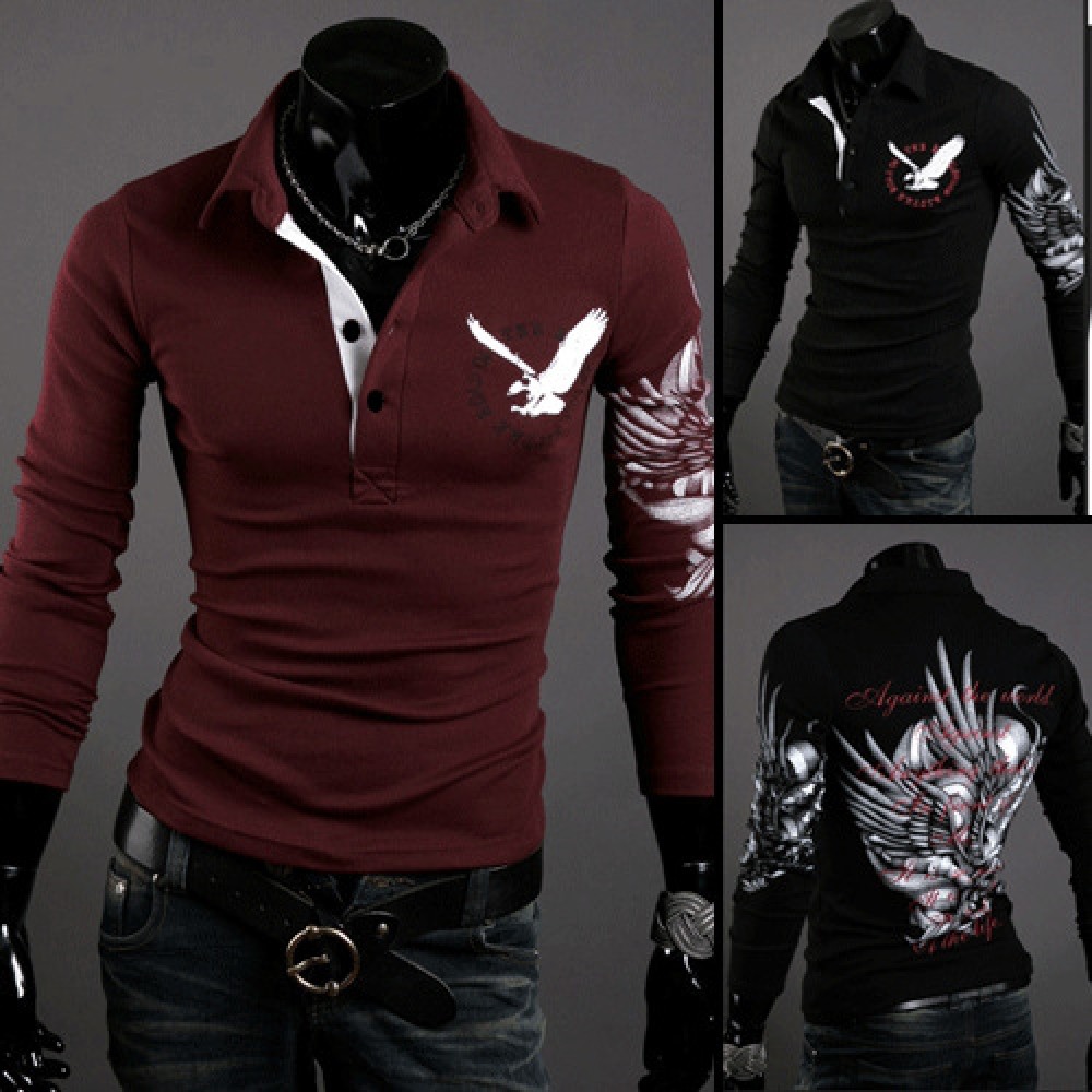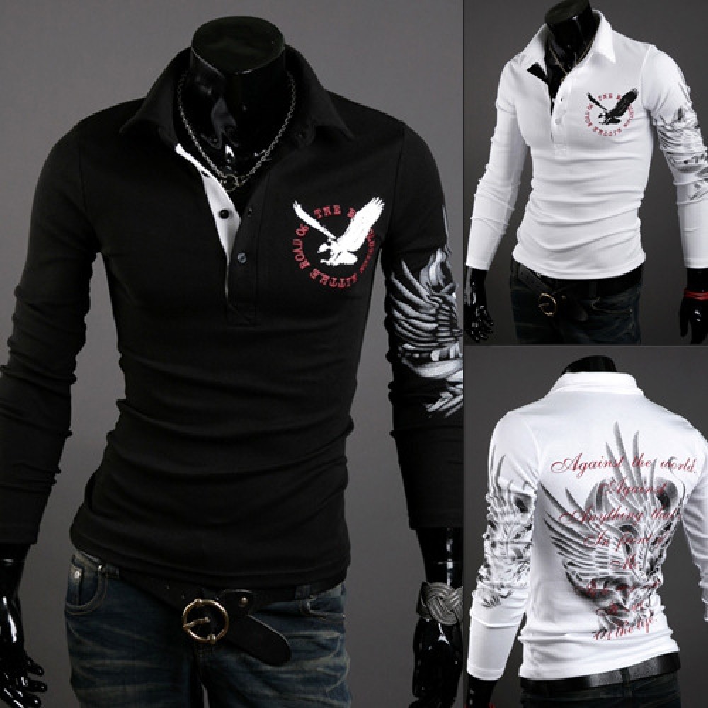 Eagle Tattoo Printing Men's Long-Sleeved Lapel T-Shirt