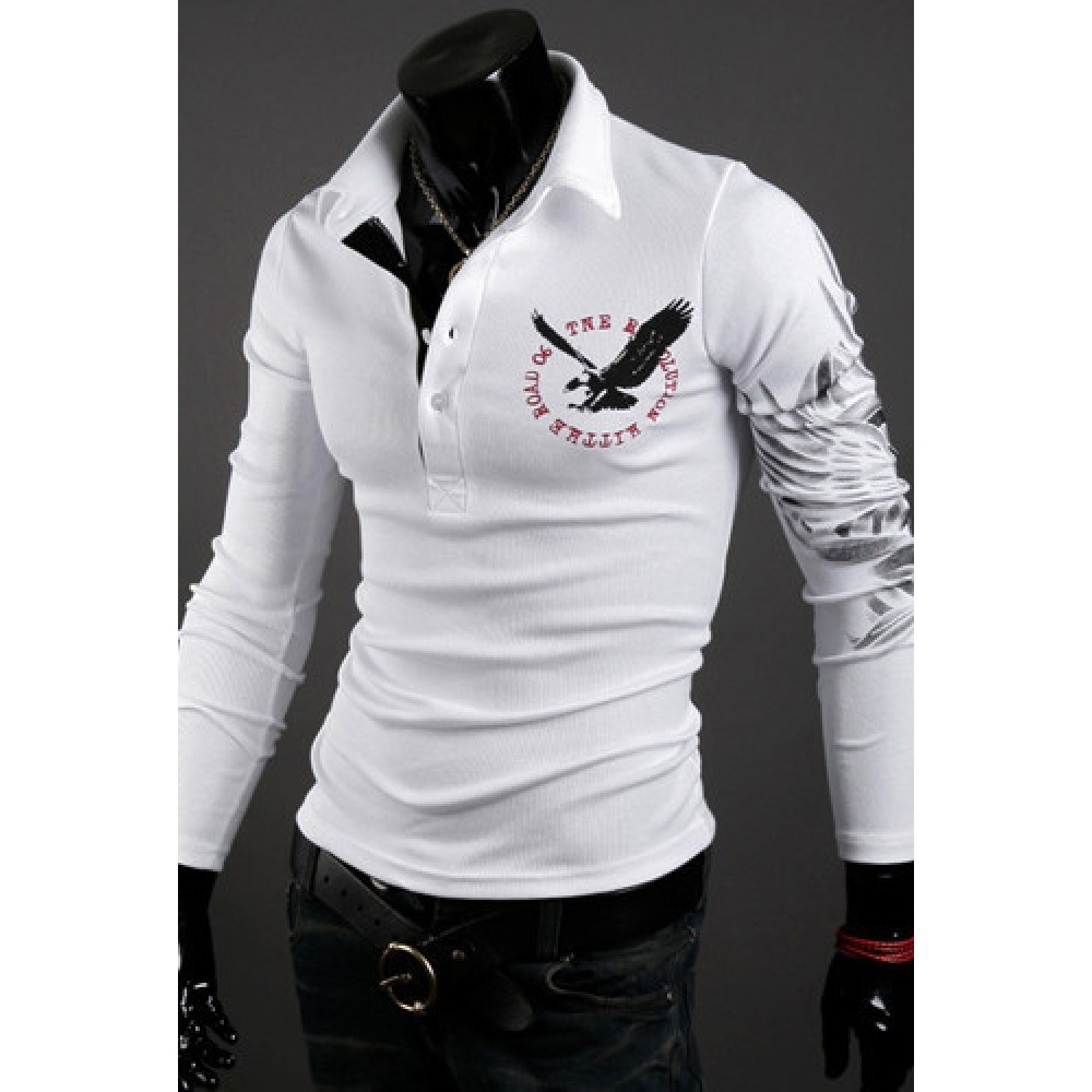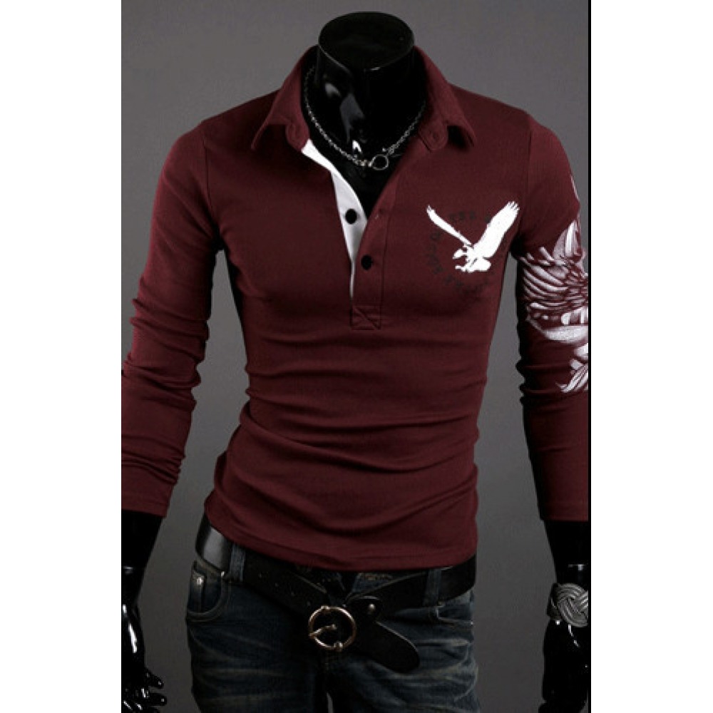 Eagle Tattoo Printing Men's Long-Sleeved Lapel T-Shirt