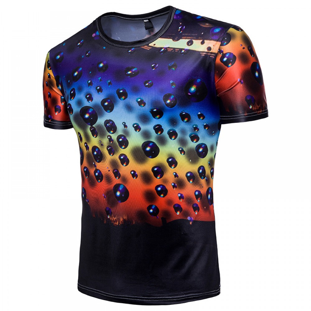 Men's 3D Short-Sleeved T-Shirt Water Drop Printing Ink Splash Graffiti Printing