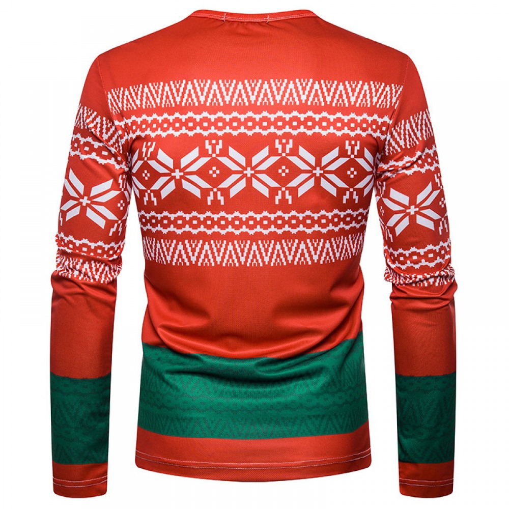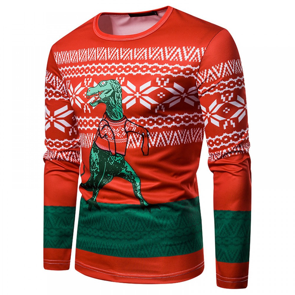 New 3D Personality Printing Fashion Men's Christmas Dinosaur Pattern Long-Sleeved T-Shirt