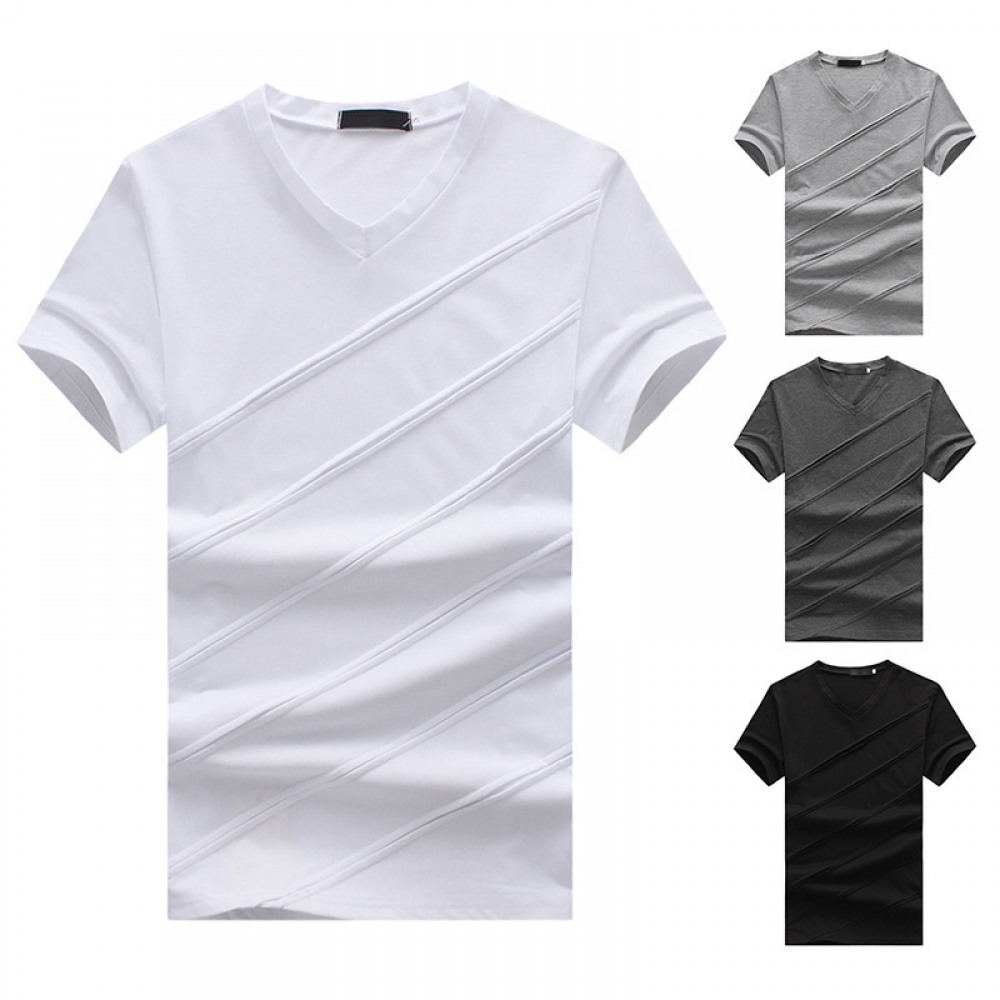 New Men's Large Size Pleated Short Sleeve T-Shirt