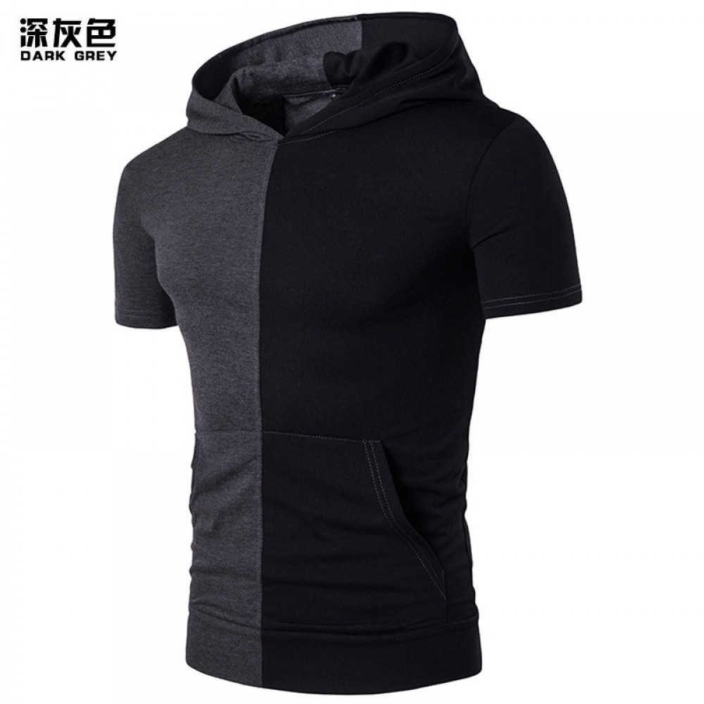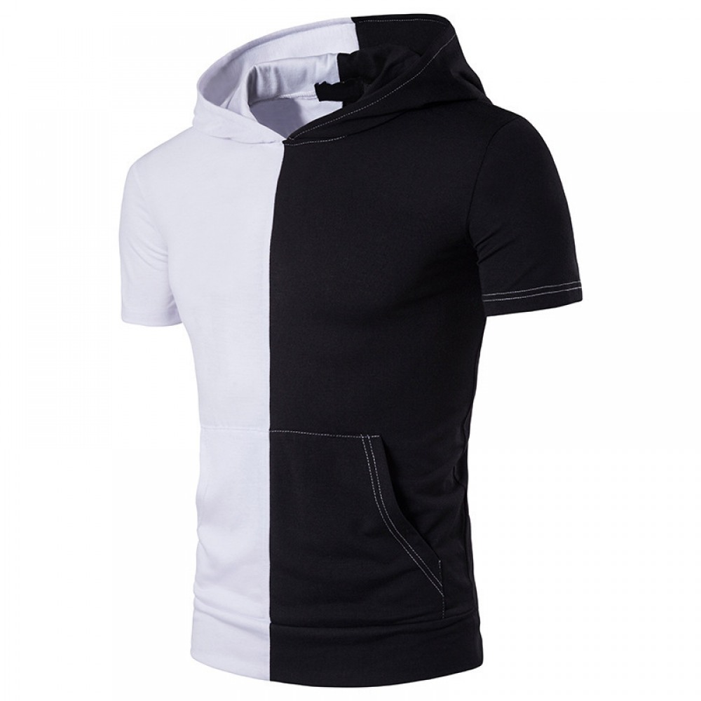 Summer Men's Hip-Hop High Street Fashion Personality Hit Color Hooded Short-Sleeved T-Shirt