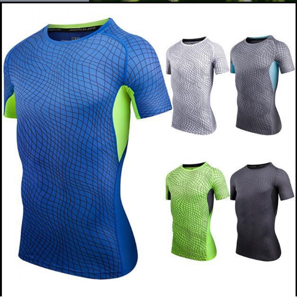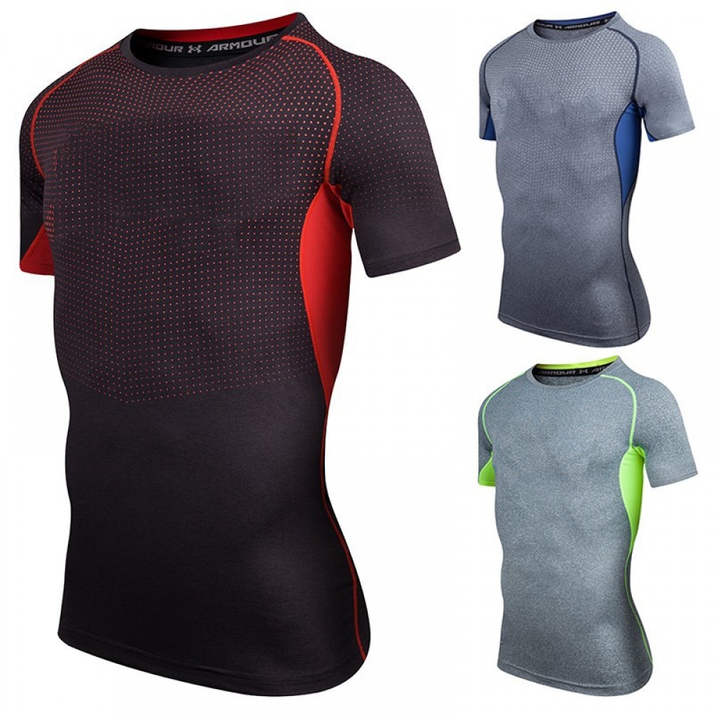 Summer Sports Short-Sleeved T-Shirt Stitching Contrast Color Casual Quick-Drying Clothes Round Neck